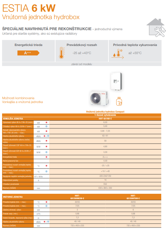 Hydrobox s tepelným čerpadlom ESTIA 6 kW - HWT-601HW-E ESTIA 4 kW Vnútorná jednotka h..